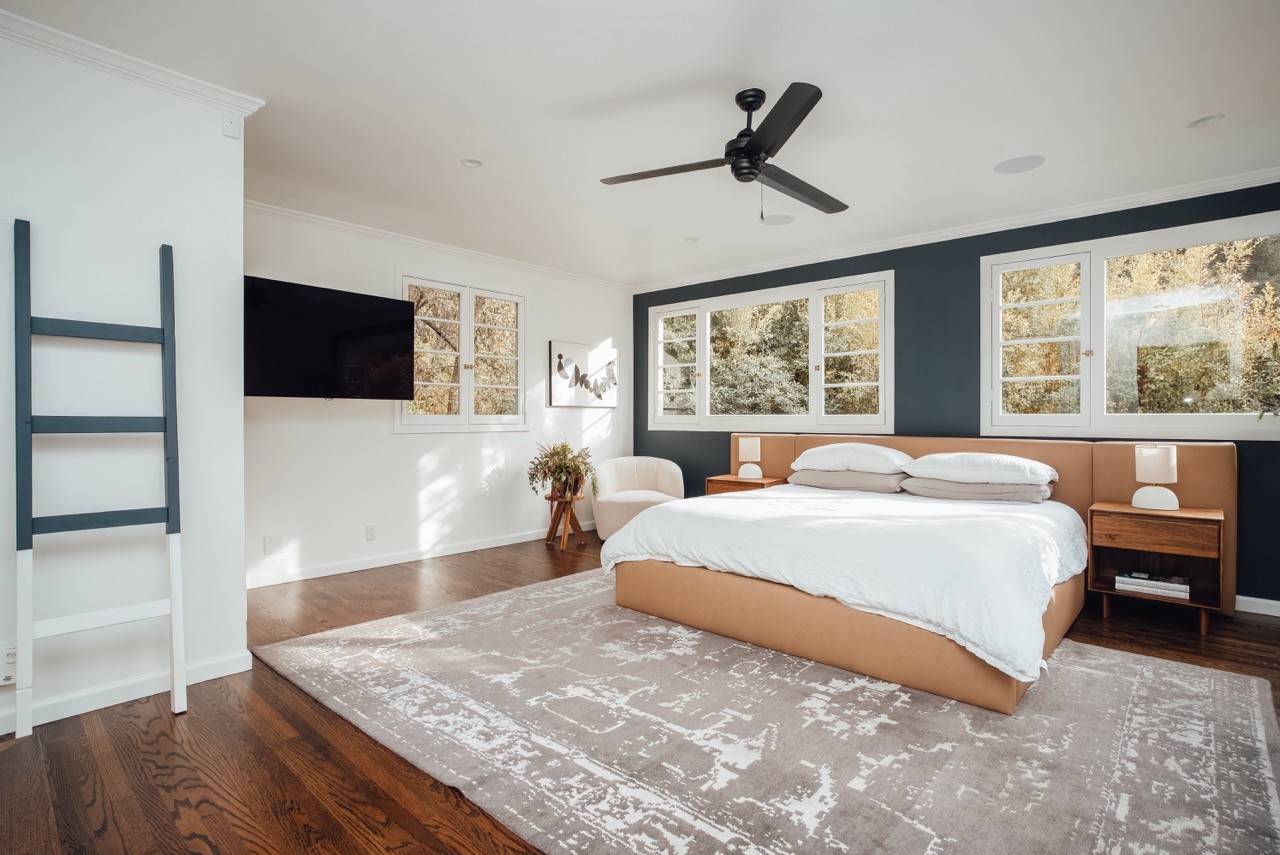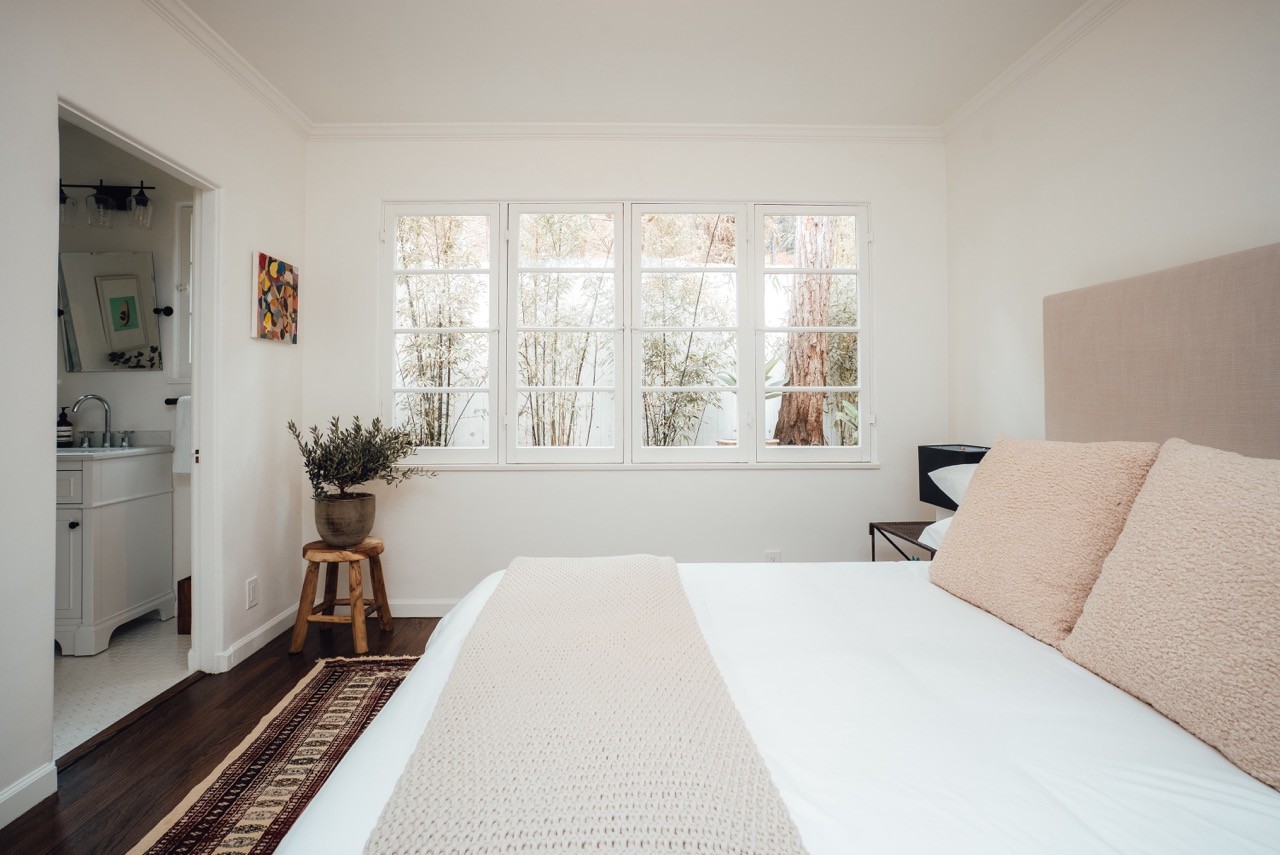 Retreat to the airy embrace of the primary bedroom, flooded with natural light and opening up to a private rooftop terrace—a tranquil escape within the luxurious confines of Casa Laurel Canyon.